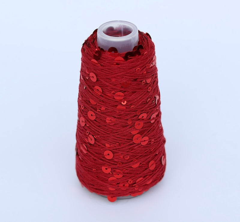 Please note that cotton yarn benefits from being knitted a little loosely to allow the sequins to glide more easily over the needles.