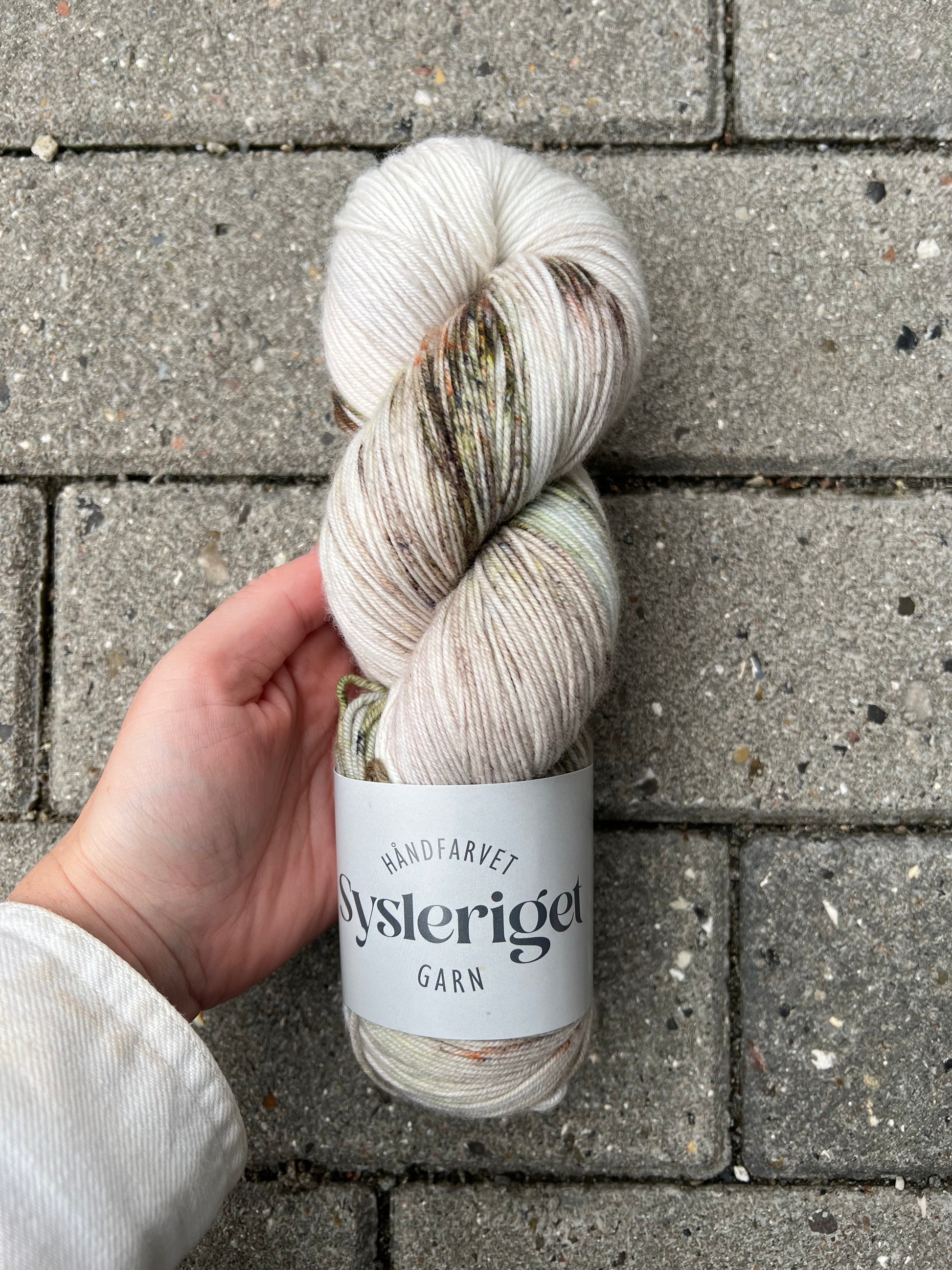Sysleriget Sock er et lækkert strømpegarn bestående af 80 % superwash-behandlet merinould og 20 % polyamid. Det er slidstærkt og egner sig særdeles godt til børnestrik, sweatre og selvfølgelig strømper, da det kan vaskes i maskinen på uldprogram.