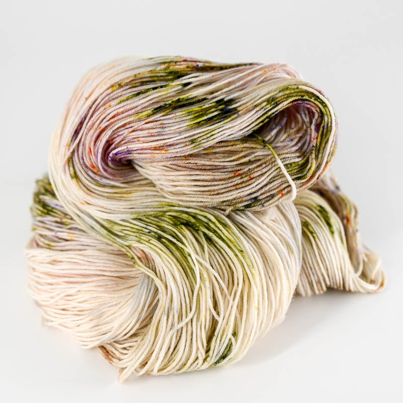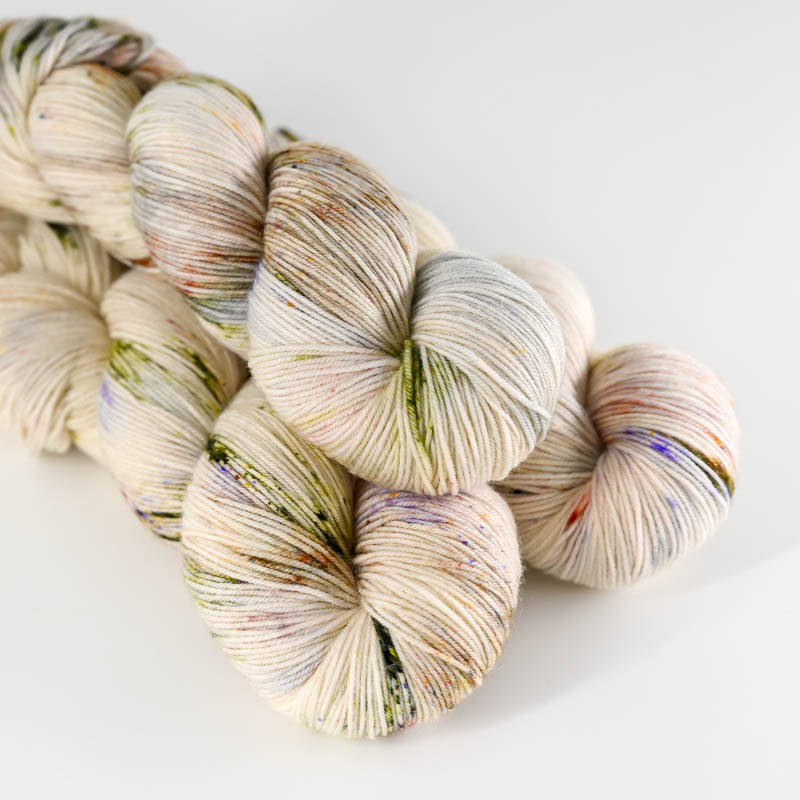 Garnet er som altid indfarvet i meget små portioner, og al farve er lagt på i hånden. Der er derfor ikke to fed der er ens. Husk derfor altid at bestille nok garn til dit projekt, da en senere indfarvning aldrig vil være identisk.