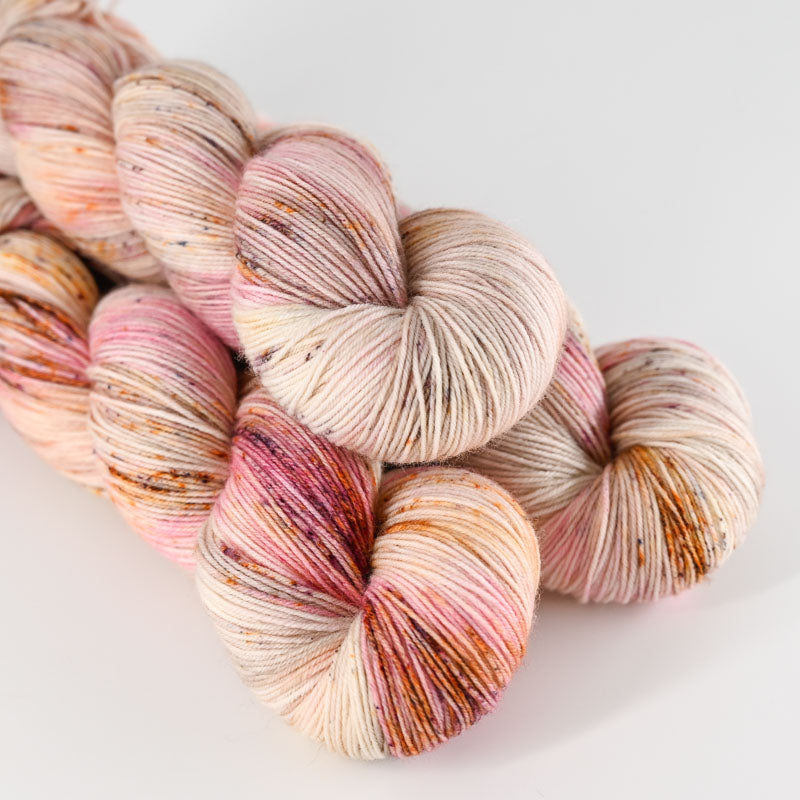 Garnet er som altid indfarvet i meget små portioner, og al farve er lagt på i hånden. Der er derfor ikke to fed der er ens. Husk derfor altid at bestille nok garn til dit projekt, da en senere indfarvning aldrig vil være identisk.